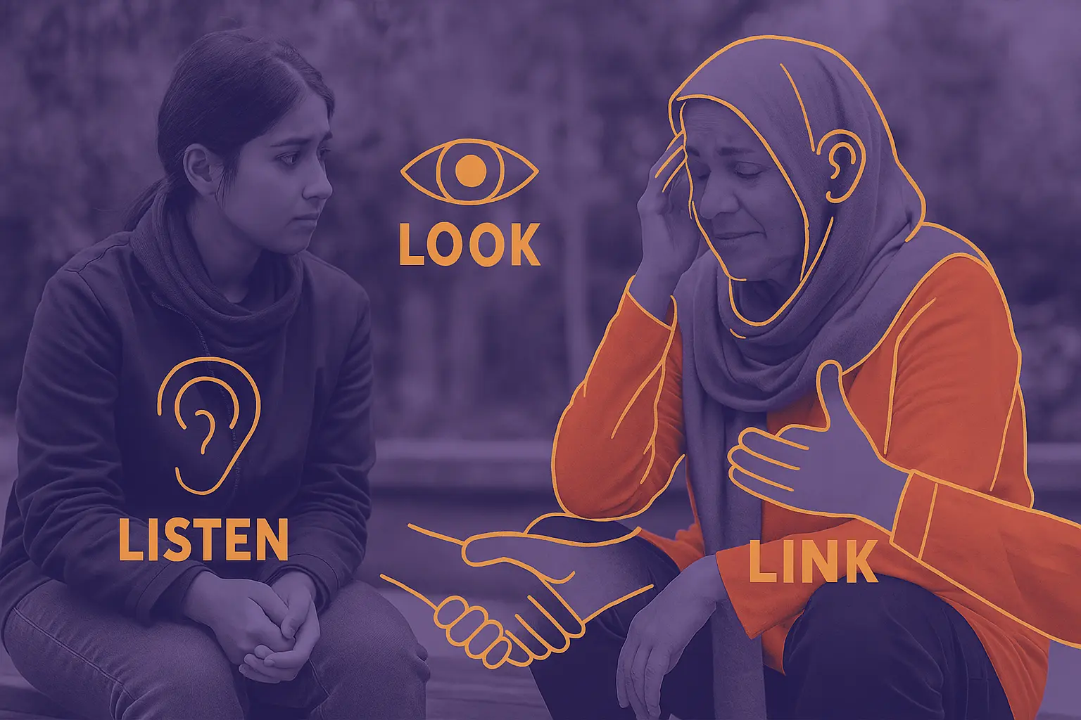 🔹 Look – دیدن: توجه به نشانههای نیاز روانی، تشخیص افراد آسیبپذیر